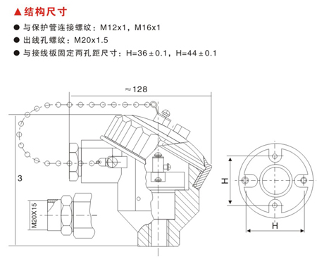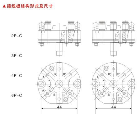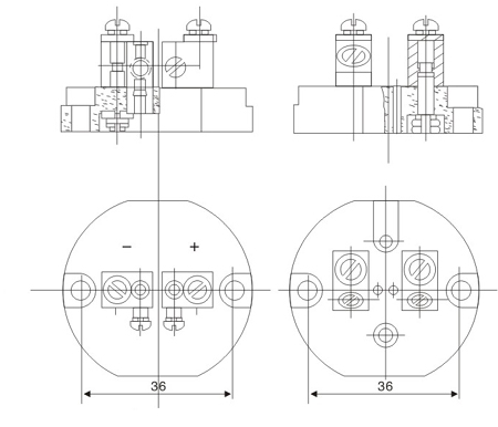 與接線板固定兩孔距尺寸: H =36±0.1,H=40±0.1