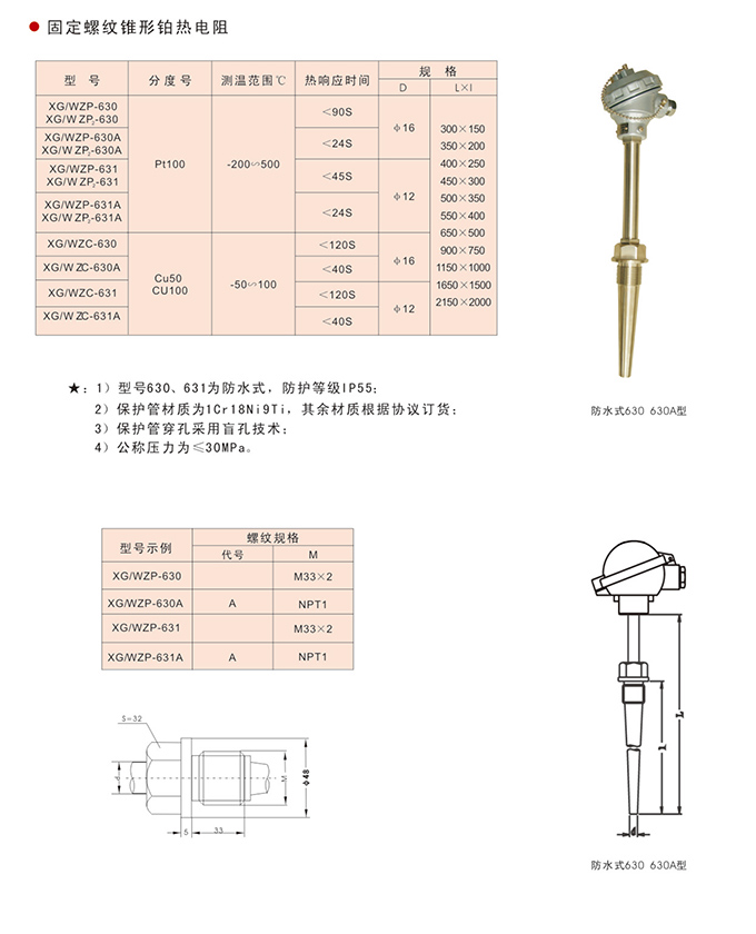 固定螺紋錐形裝配熱電阻: