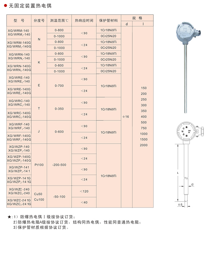 無固定裝置防爆熱電偶(阻):