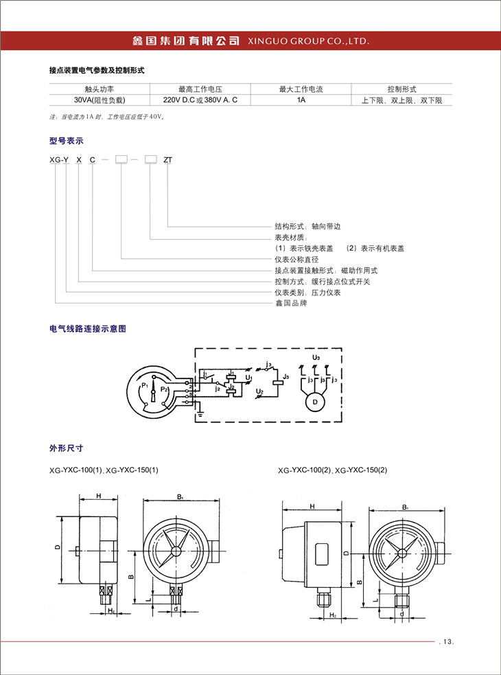 在電接點裝置的電接觸信號針上,有可調節的永 久磁鋼,可以增加接點吸力,加快接觸動作,從而使觸點接觸可靠,消 除電弧,能有效地避免儀表由于工作環境振動或介質壓力脈動造成觸點的頻繁關斷。所以磁助電接點壓力表具有動作可靠,使用壽命長,觸點開關功率較大等優點。