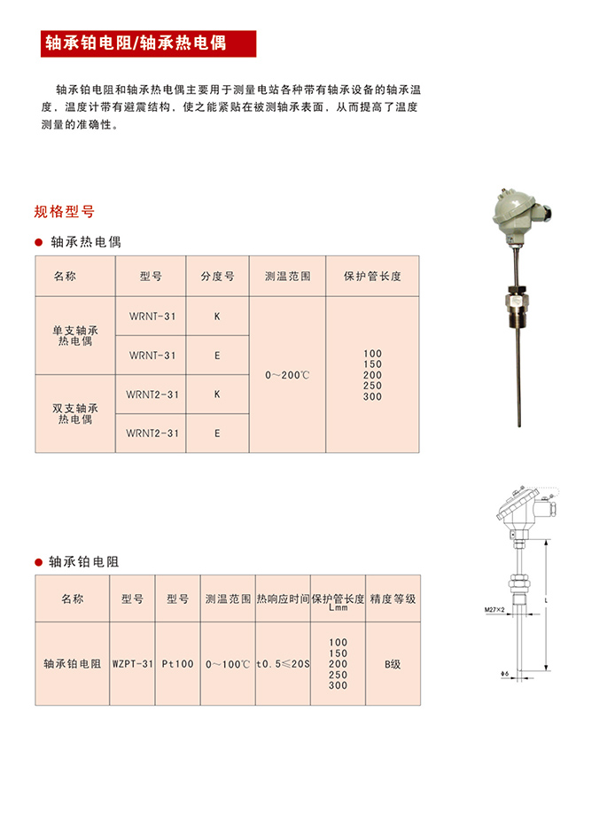 軸承鉑電阻和軸承熱電偶主要用于測(cè)量電站各種帶有軸承設(shè)備的軸承溫度,溫度計(jì)帶有避震結(jié)構(gòu),使之能緊貼在被測(cè)軸承表面,從而提高了溫度測(cè)量的準(zhǔn)確性。